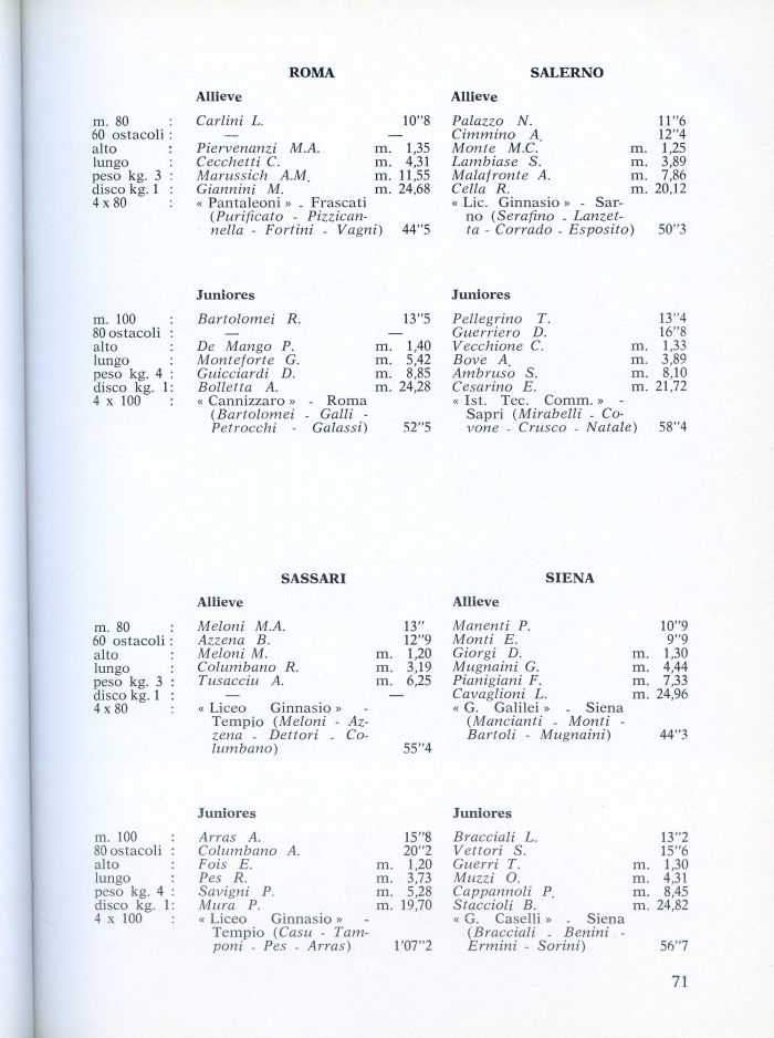 m. 100 80 ostacoli alto lungo peso kg. 4 disco kg. 1 : 4 x 100