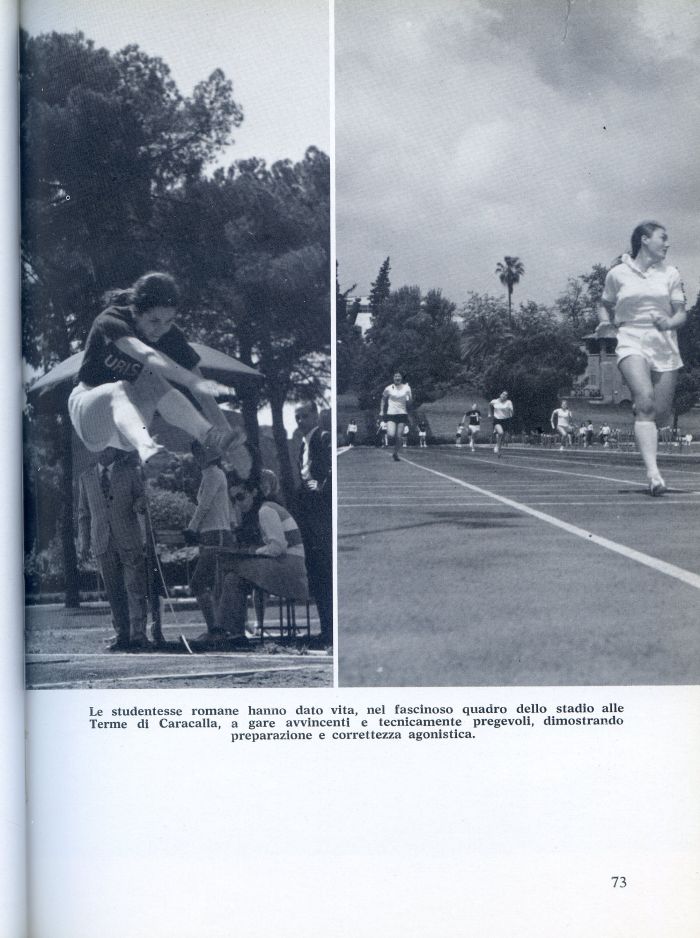 Le studentesse romane hanno dato vita, nel fascinoso quadro dello stadio alle Terme di Caracalla, a gare avvincenti e tecnicamente pregevoli, dimostrando preparazione e correttezza agonistica. 73