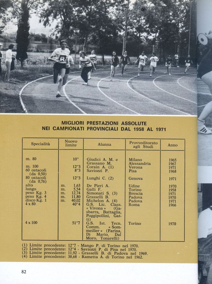 MIGLIORI PRESTAZIONI ASSOLUTE NEI CAMPIONATI PROVINCIALI DAL 1958 AL 1971