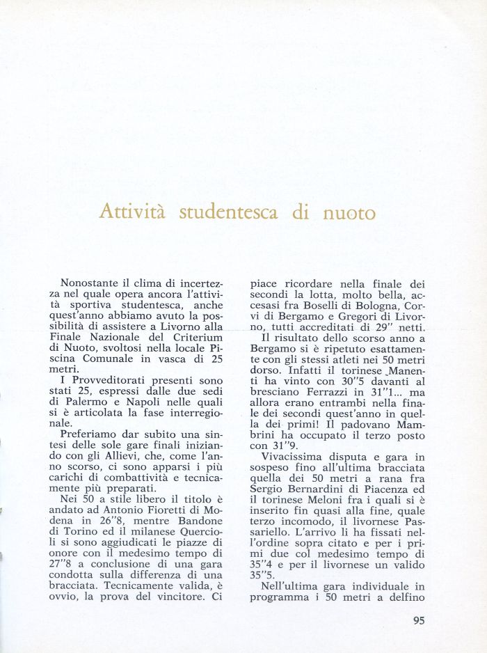 Nonostante il clima di incertezza nel quale opera ancora l'attività sportiva studentesca, anche quest'anno abbiamo avuto la possibilità di assistere a Livorno alla Finale Nazionale del Criterium di Nuoto, svoltosi nella locale Piscina Comunale in vasca di 25 metri.