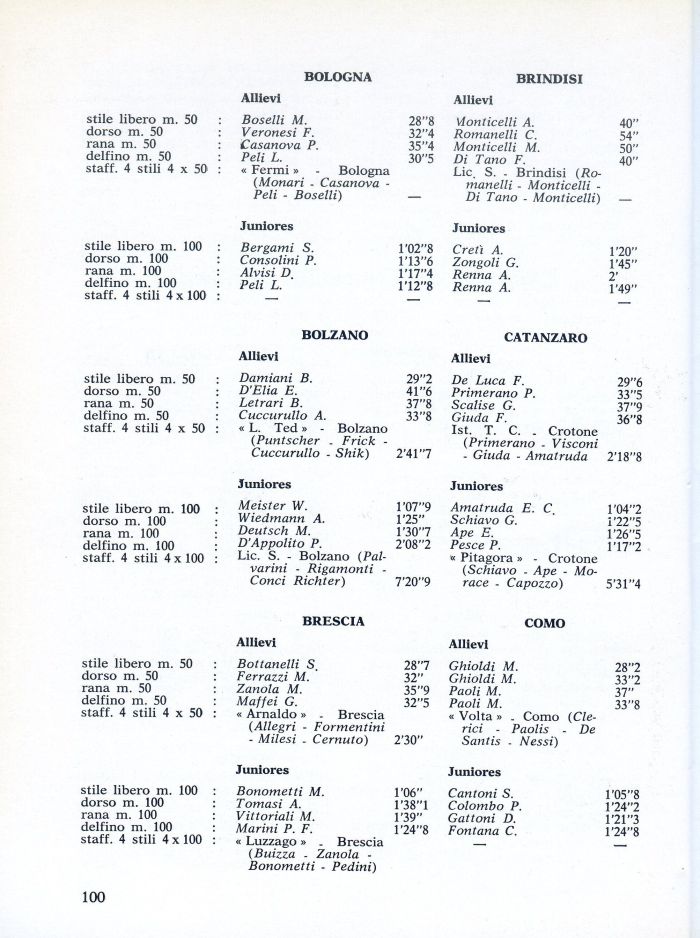 stile libero m. 100 dorso m. 100 rana m. 100 delfino m. 100 staff. 4 stili 4 x 100