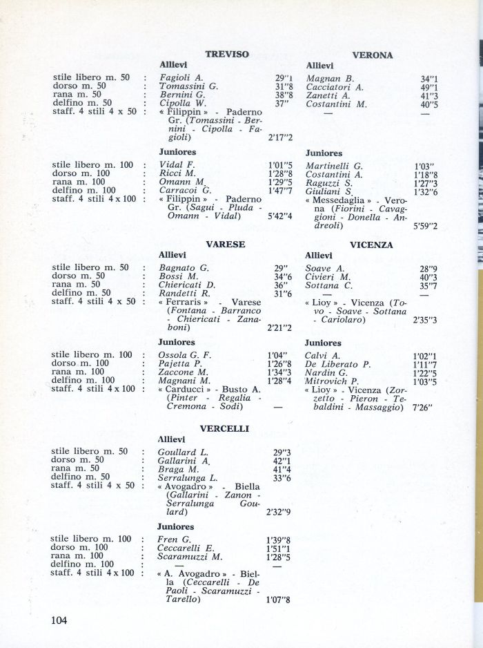 Fagioli A. 29'! Tomassini G. 31'8 Bernini G. 38'8 Cipolla W. 37' << Filippin » - Paderno Gr. (Tomassini - Bernini - Cipolla - Fagioli) 2'17'2
