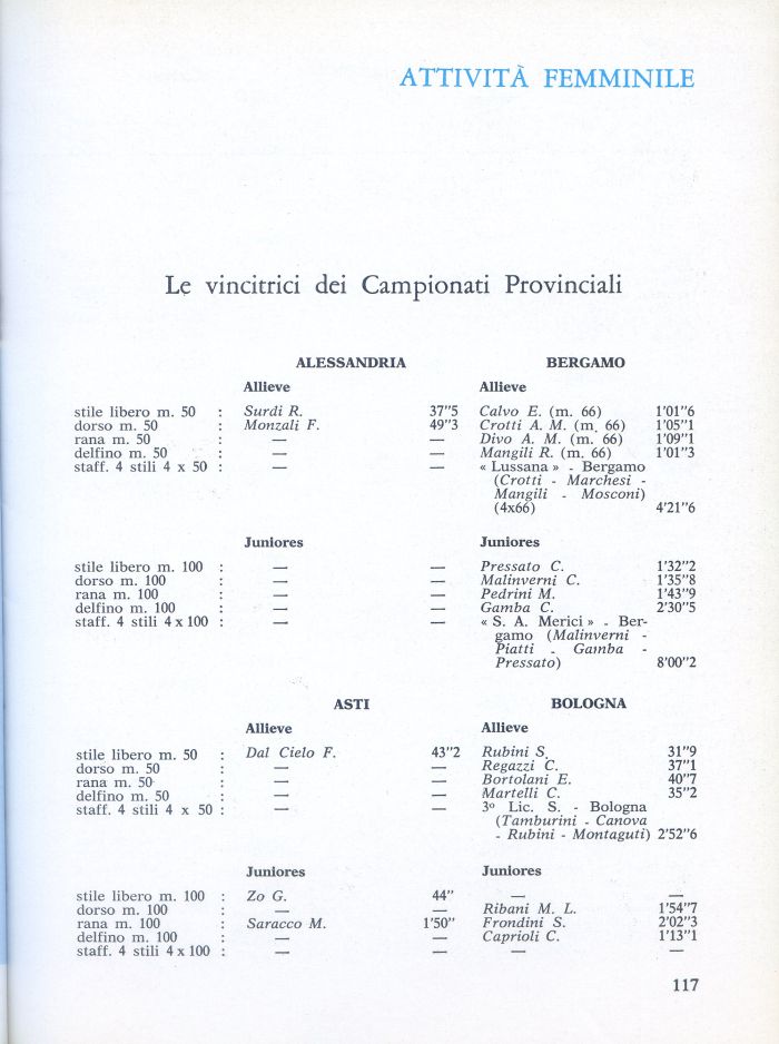 Pressato C. l'32'2 Malinverni C. l'35'8 Pedrini M. l'43'9 Gamba C. 2'30'5 « S. A. Merici » - Bergamo (Malinverni -Piatti . Gamba Pressato) 8'00'2