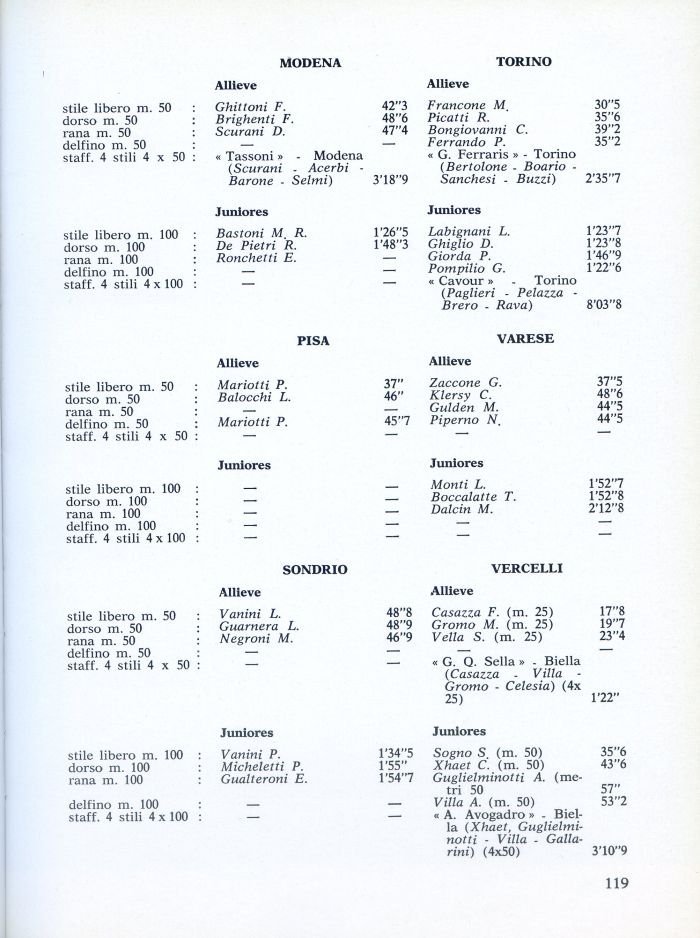 l'34'5 Sogno S (m. 50) l'55' Xhaet C. (m. 50) l'54'7 Guglielminotti A. (metri 50