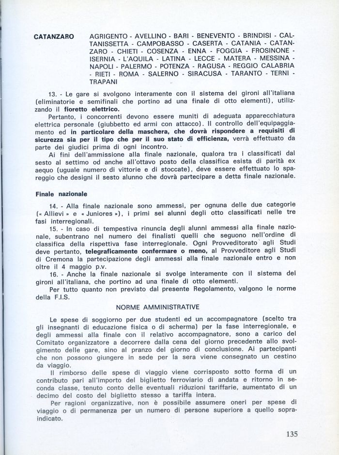 15. - In caso di tempestiva rinuncia degli alunni ammessi alla finale nazionale, subentrano nel numero dei finalisti quelli che seguono nell'ordine di classifica della rispettiva fase interregionale. Ogni Provveditorato agli Studi deve pertanto, telegraficamente confermare o meno, al Provveditore agli Studi di Cremona la partecipazione degli ammessi alla finale nazionale entro e non oltre il 4 maggio p.v.