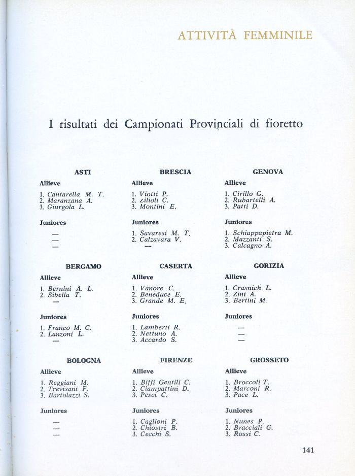 I risultati dei Campionati Provinciali di fioretto