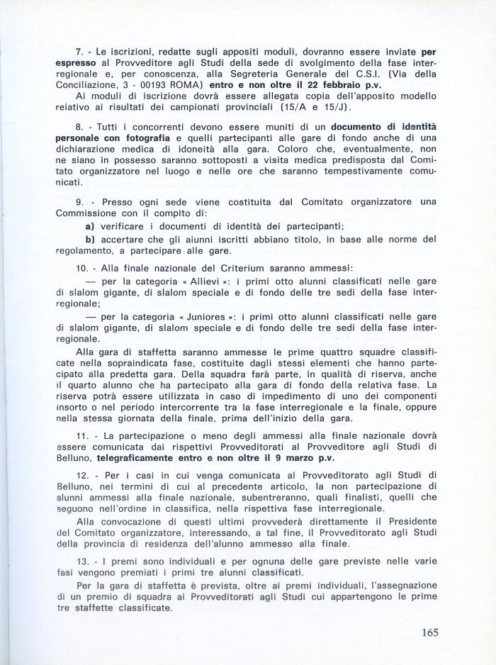 11. - La partecipazione o meno degli ammessi alla finale nazionale dovrà essere comunicata dai rispettivi Provveditorati al Provveditore agli Studi di Belluno, telegraficamente entro e non oltre il 9 marzo p.v.