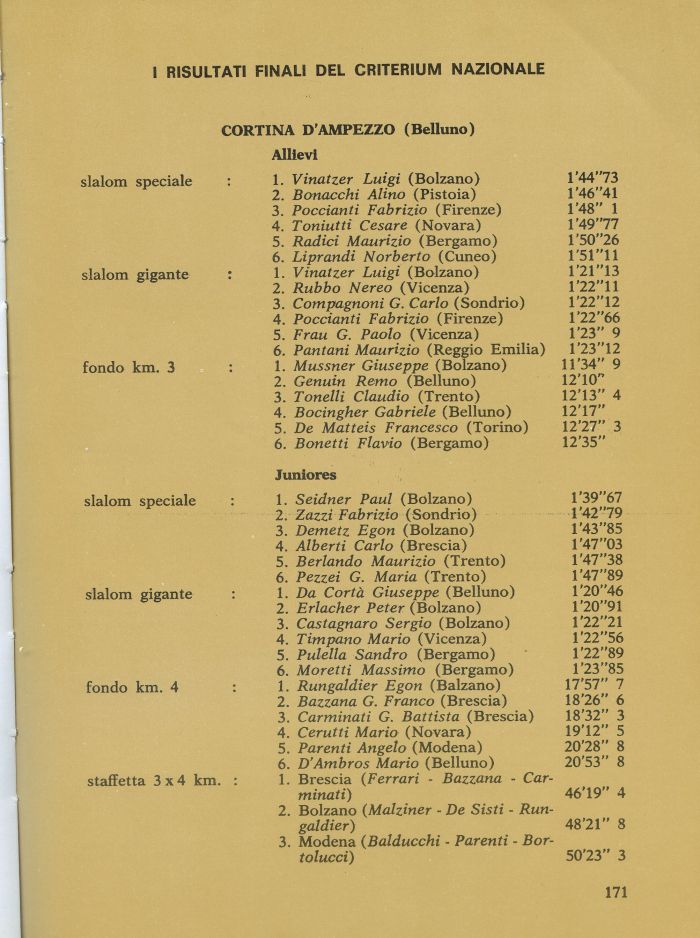 6. Liprandi Norberto (Cuneo) r51'll : 1. Vinatzer Luigi (Bolzano) l'21'13