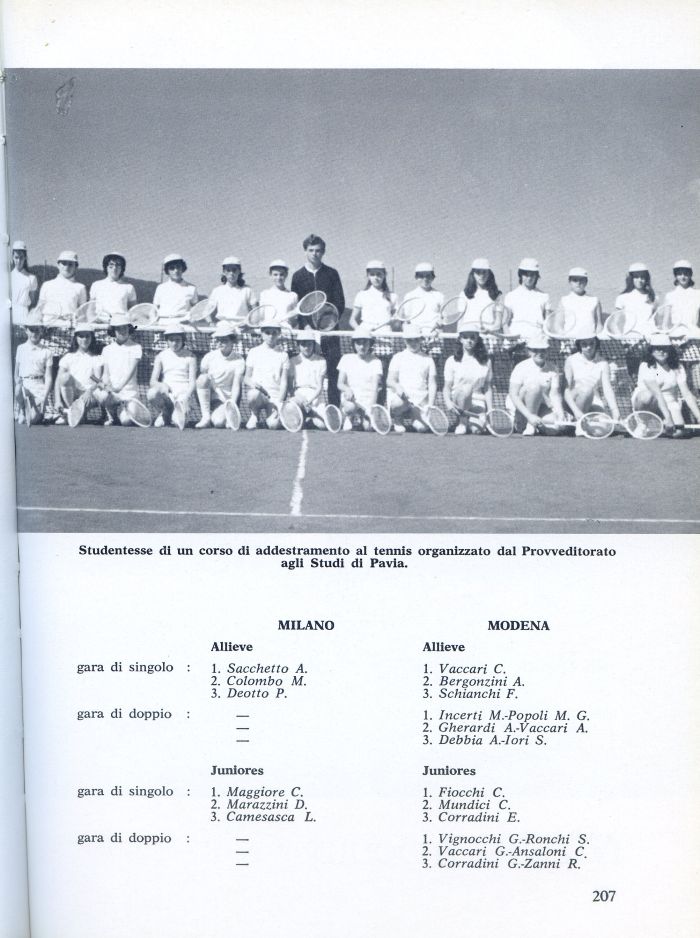 Studentesse di un corso di addestramento al tennis organizzato dal Provveditorato
