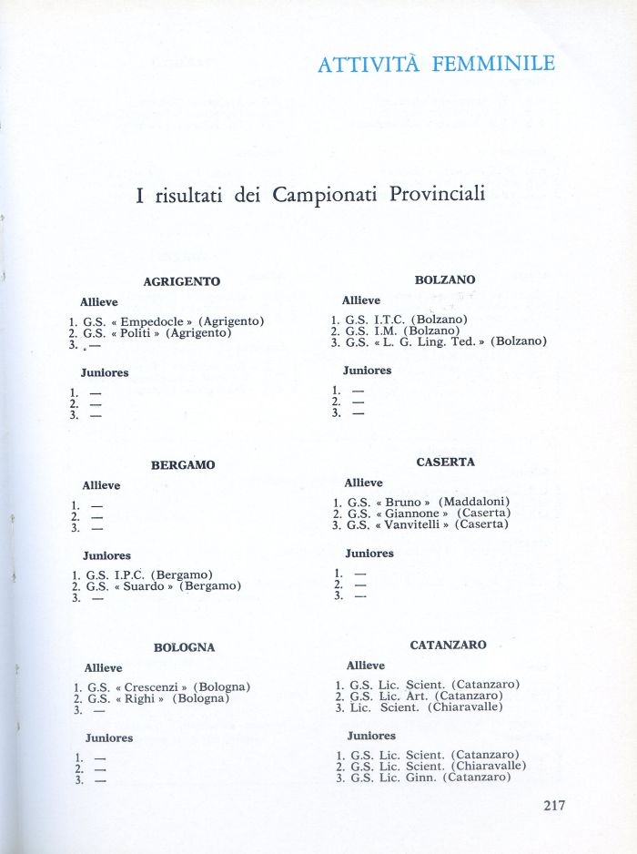 Stai consultando: 'Attività Sportiva Scolastica 1971 Annuario dell'Ispettorato per l'Educazione Fisica e Sportiva', Ministero della Pubblica Istruzione