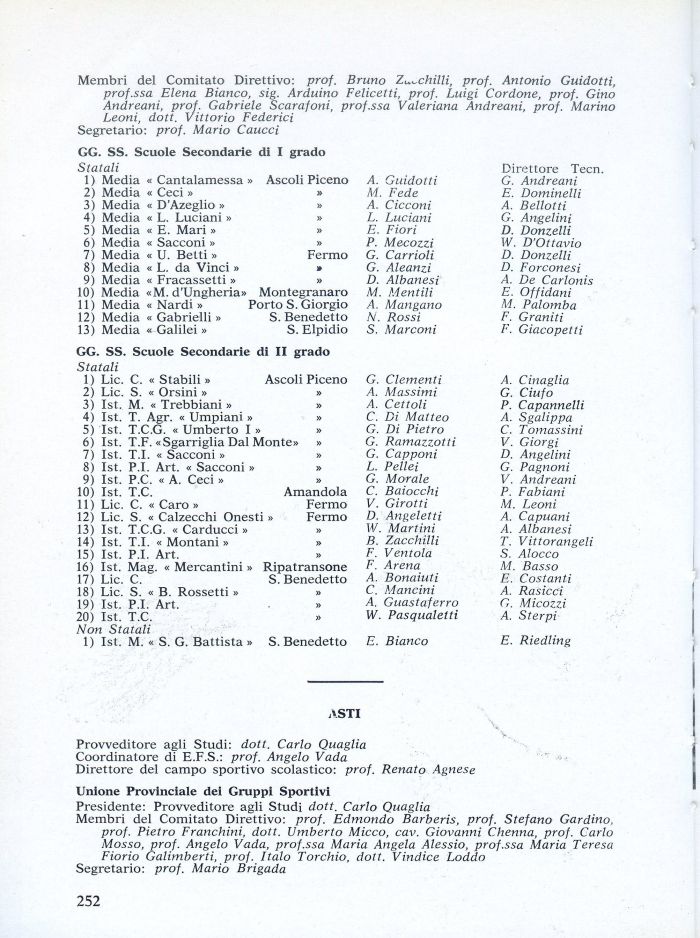 Membri del Comitato Direttivo: prof. Bruno Z^chilli, prof. Antonio Guidotti, prof.ssa Elena Bianco, sig. Arduino Felicetti, prof. Luigi Cordone, prof. Gino Andreani, prof. Gabriele Scarafoni, prof.ssa Valeriana Andreani, prof. Marino Leoni, dott. Vittorio Federici Segretario: prof. Mario Caucci