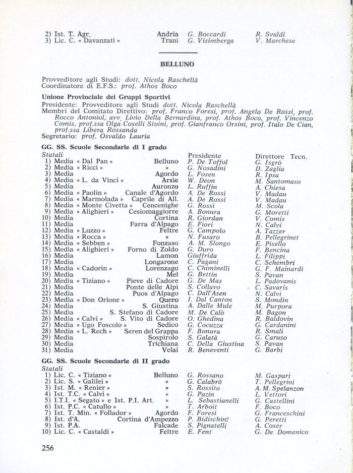 Membri del Comitato Direttivo: prof. Franco Foresi, prof. Angelo De Rossi, prof. Rocco Antoniol, avv. Livio Della Bernardina, prof. Athos Boco, prof. Vincenzo Cotnis, prof.ssa Olga Caselli Stoini, prof. Gianfranco Orsini, prof. Italo De Cian, prof .ssa Libera Rossanda Segretario: prof. Osvaldo Lauria