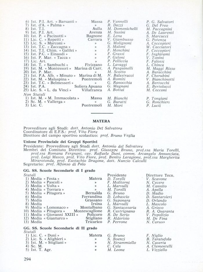 Presidente: Provveditore agli Studi dott. Antonio del Salvatore Membri del Comitato Direttivo: prof. Giuseppe Bruno, prof.ssa Maria Torelli, prof.ssa Romana Fergnani, cav. Raffaele Duni, comm. Arcangelo Annunziata, prof. Luigi Masco, prof. Vito Fiore, prof. Benito Laragione, prof.ssa Margherita Mirarotonda, prof. Eustachio Dragone, dott. Nunzio Calculli Segretario: prof. Alfonso di Palo