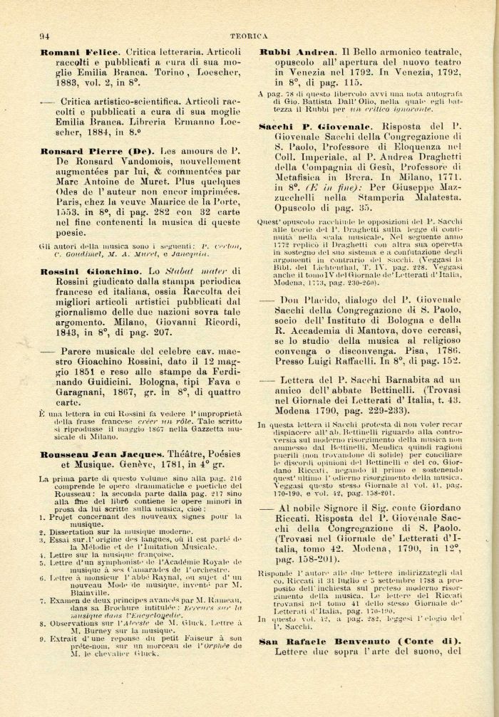 Sacchi della Congregazione di S. Paolo, socio dell' lustituto di Bologna e della R. Accademia di Mantova, dove cercasi, se lo studio della musica al religioso convenga o disconvenga. Pisa, 178IÌ. Presso Luigi Raffaelli. In 8°, di pag. 152.