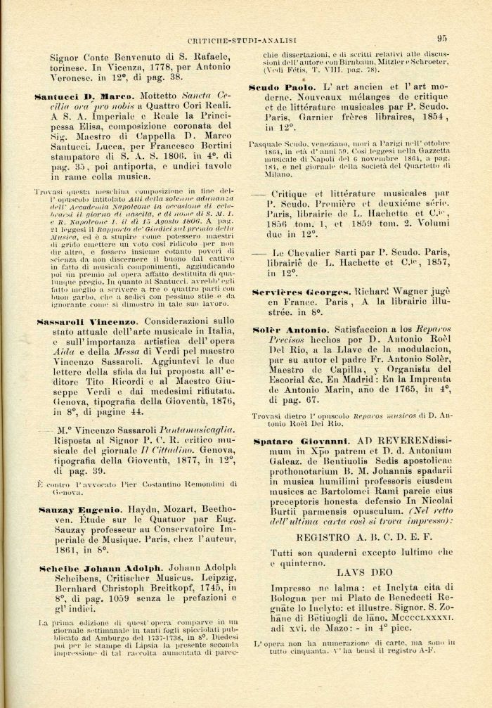 Sclieibe Johann Adolph. Johann Adolph Seheibens, Critischer Musicus. Leipzig, Bernhard Christoph Breitkopf, 1745, in 8°, di pag. 1059 senza le prefazioni e gl' indici.