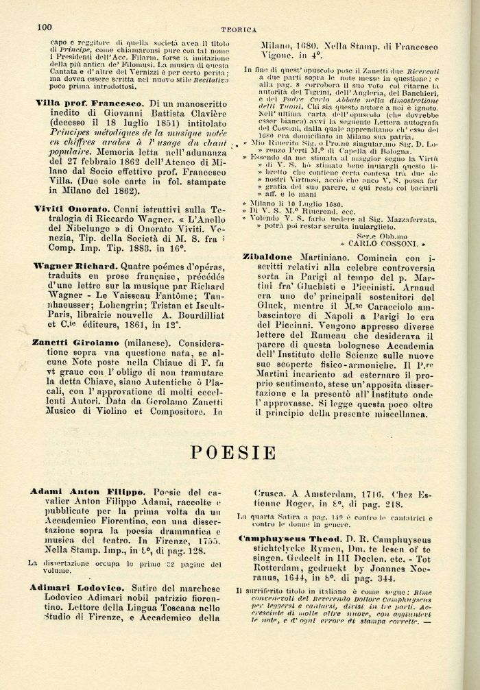 In fine di quest'opuscolo poso il Zanetti due Ricercali a due parti sopra le nute messe in questione : e alla pag. 8 corrobora il suo voto col citarne la autorità del Tigrini, dell'Angleria, del Banchieri, e del patire corto Abbate nella diiiìostralionc tieni Tuoni. Chi sia questo autore a noi è ignoto. Keil' ultima carta dell'opuscolo (che dovrebbe, esser bianca) avvi ia seguente Lettera autografa del Cossuni, dalla quale apprendiamo di' esso del 1080 era domiciliato in Milano sua patria.