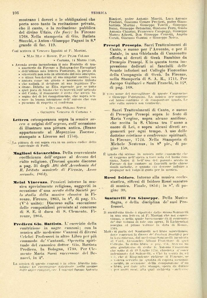 Santarelli Fra Giuseppe. Della Musica Sagra, e della disciplina do' suoi Professori.