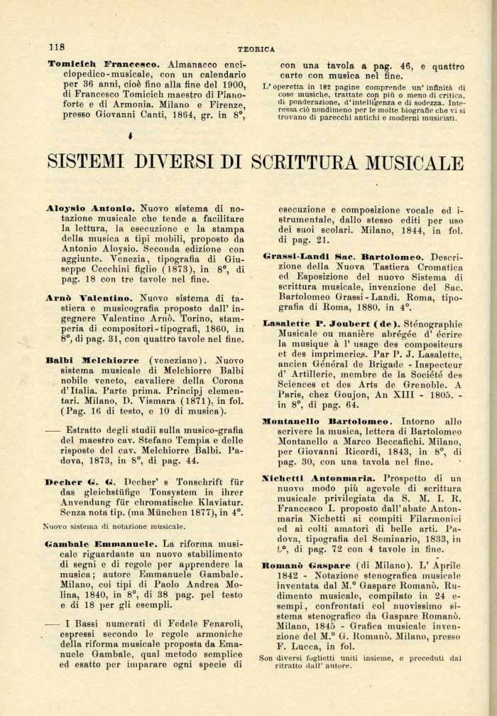 Romani) Gaspare (di Milano). L' Aprile 1842 - Notazione stenografica musicale inventata dal M.° Gaspare Romano. Rudimento musicale, compilato in 24 e-eempi, confrontati col nuovissimo sistema stenografico da Gaspare Romano. Milano, 1845 - Grafica musicale invenzione del M.° G. Romano. Milano, presso F. Lucca, in fol.