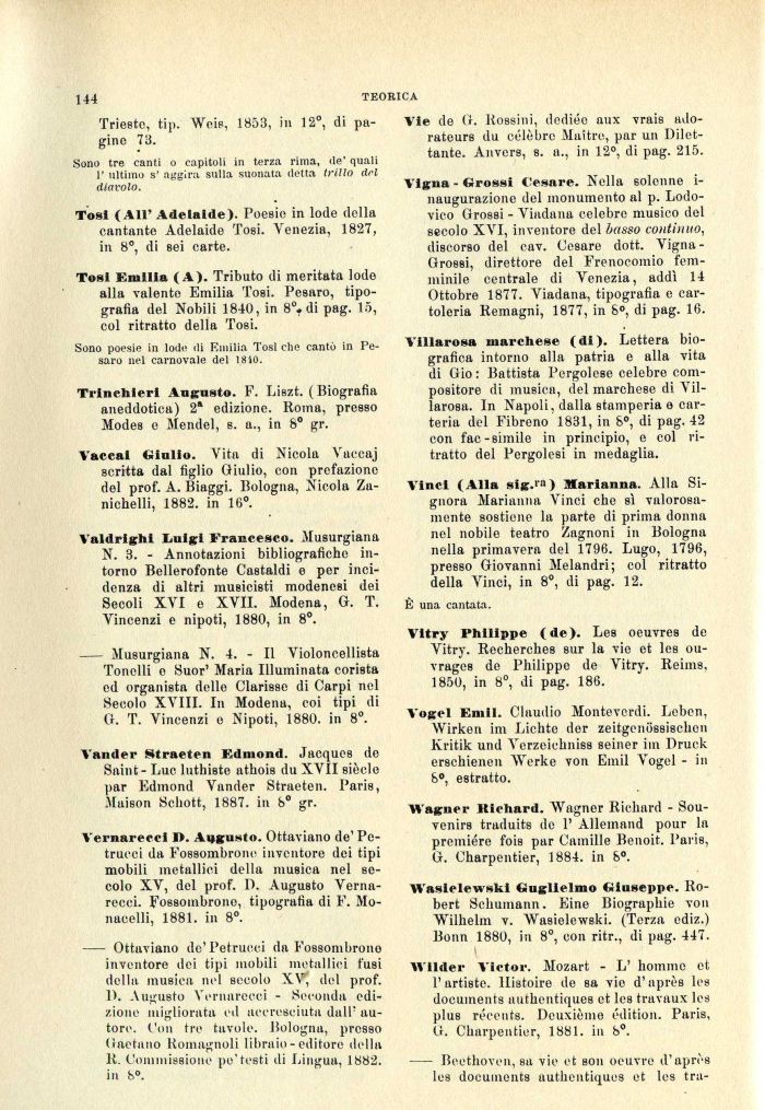 Trinchieri Angusto. F. Liszt. ( Biografia aneddotica) 2a edizione. Roma, presso Modes e Mendel, s. a., in 8° gr.