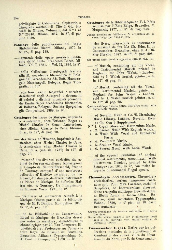 Catalogue de la Bibliothèquo de F. I. Fétis acquise par 1' État Belge. Bruxelles, C. Muquardt, 1877, in 8°, di pag. 943.