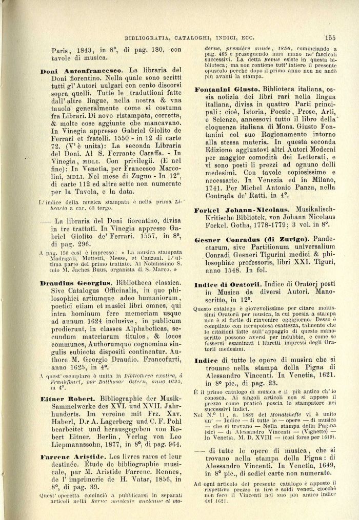 Farrene Aristide. Los livres rares et leur destinée. Etude do bibliographie musicale, par M. Aristide Farronc. Renncs, de 1' imprimerio de H. Yatar, 1856, in 8°, di pag. 39.