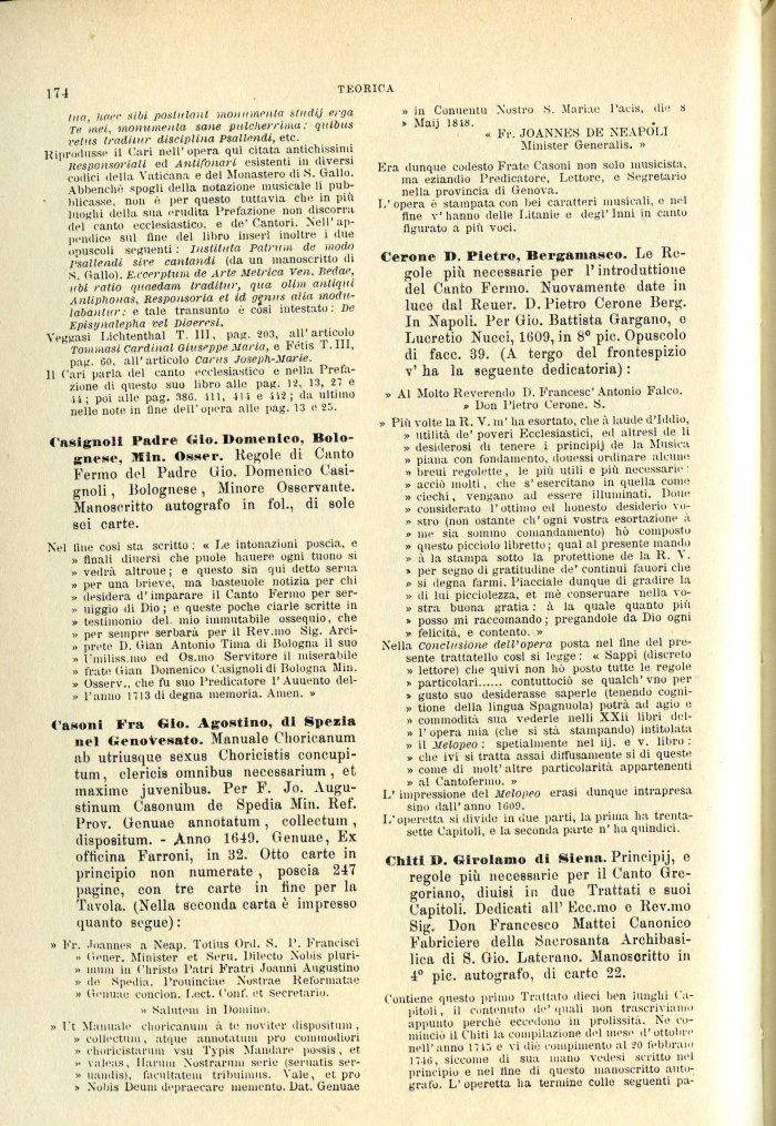 Era dunque codesto Frate Casoni non solo musicista, ma eziandio Predicatore, Lettore, e Segretario nella provincia di Genova.
