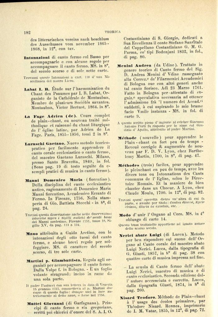La Faste Adrien (de). Cours complet de plain-cliant, ou nouveau traité mé-thodique et raisonné du chant liturgique de 1' église latine, par Adrien do La Page. Paris, 1855- 1856, tomi 2 in 8°.