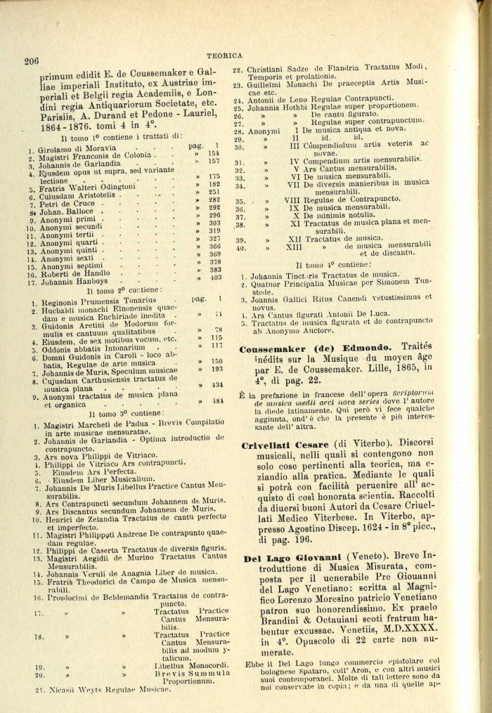 Conssemaker (de) Edmondo. Traités inédits sur la Musique du moyen àgo par E. de Coussemakor. Lille, 1865, in 4°, di pag. 22.