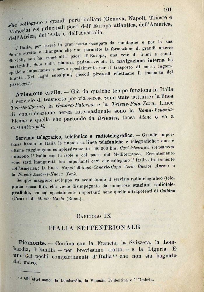 Sempre maggiore sviluppo va acquistando il servizio radiotelegrafico (telegrafia senza fili), che viene disimpegnato da numerose stazioni radiotelegrafiche, tra cui specialmente importanti sono quelle ultrapotenti di Coltdno (Pisa) e di Monte Mario (Roma).