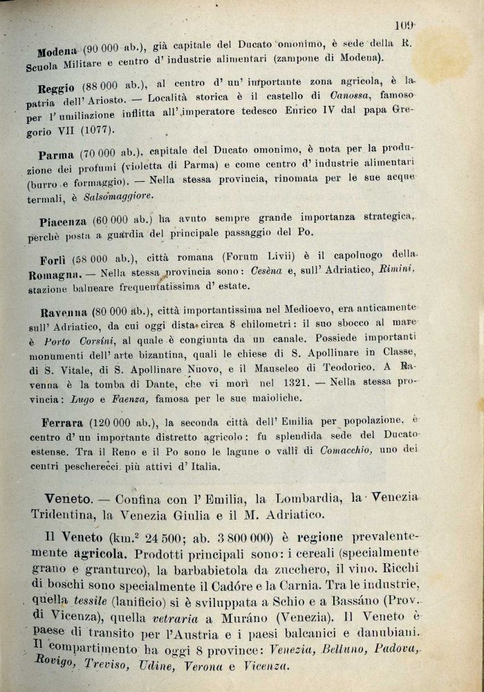 Veneto. — Confina con 1' Emilia, la Lombardia, la Venezia Tridentina, la Venezia Giulia e il M. Adriatico.