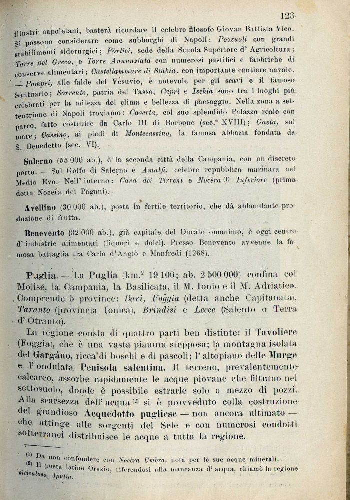 illustri napoletani, basterà ricordare il celebre filosofo Giovali Battista Vico, gì possono considerare come subborghi di Napoli: Pozzuoli con grandi stabilimenti siderurgici; Pòrtici, sede della Scuola Superiore d'Agricoltura : Torre del Greco, e Torre Annunziata con numerosi pastifìci e fabbriche di conserve alimentari ; Castellammare di Stabia, con importante cantiere navale.