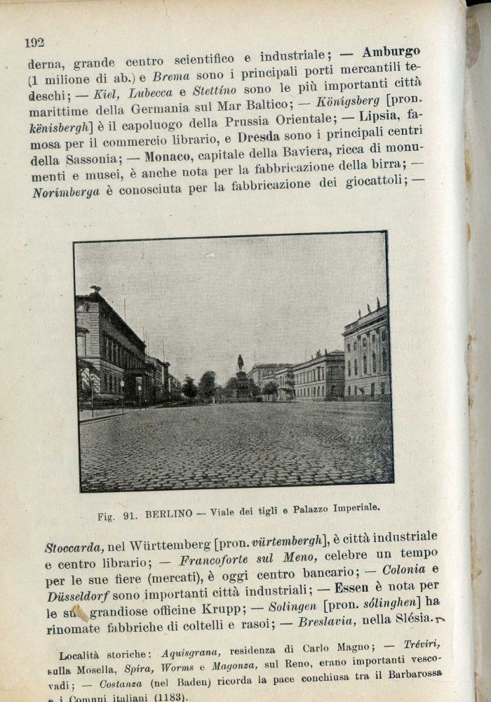 Località storiche: Aquisgrana, residenza di Carlo Magno; — Tréviri, sulla Mosella, Spira, Worms e Magonza, sul Reno, erano importanti vescovadi ; — Costanza (nel Badeuj ricorda la pace conchiusa tra il Barbarossa e i Comuui italiani (1183J.