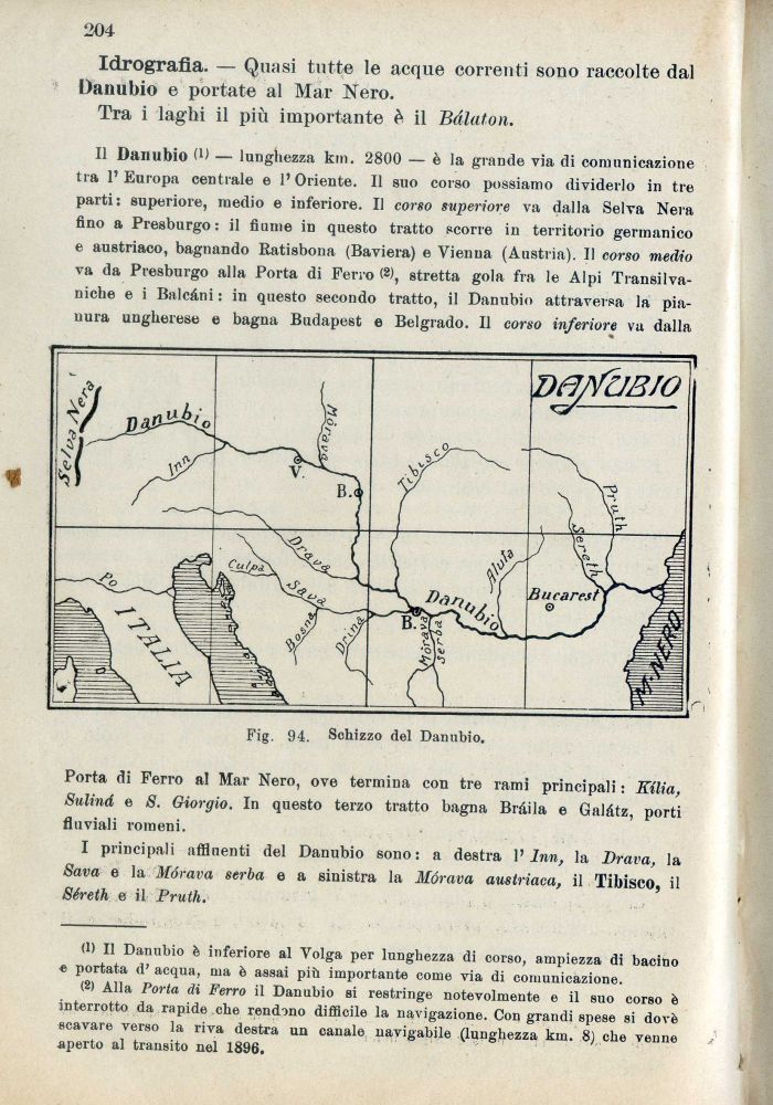 (1) Il Danubio è inferiore al Volga per lunghezza di corso, ampiezza di bacino e portata d' acqua, ma è assai più importante come via di comunicazione.