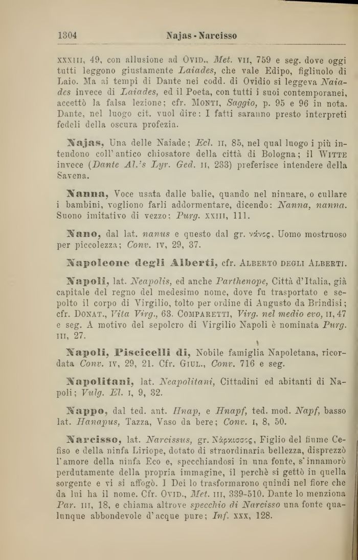 xxxiii, 49, con allusione ad Ovid., Met. vii, 759 e seg. dove oggi tutti leggono giustamente Laiades, che vale Edipo, figliuolo di Laio. Ma ai tempi di Dante nei codd. di Ovidio si leggeva Naia-dcs invece di Laiades, ed il Poeta, con tutti i suoi contemporanei, accettò la falsa lezione; cfr. Monti, Saggio, p. 95 e 96 in nota. Dante, nel luogo cit. vuol dire: I fatti saranno presto interpreti fedeli della oscura profezia.