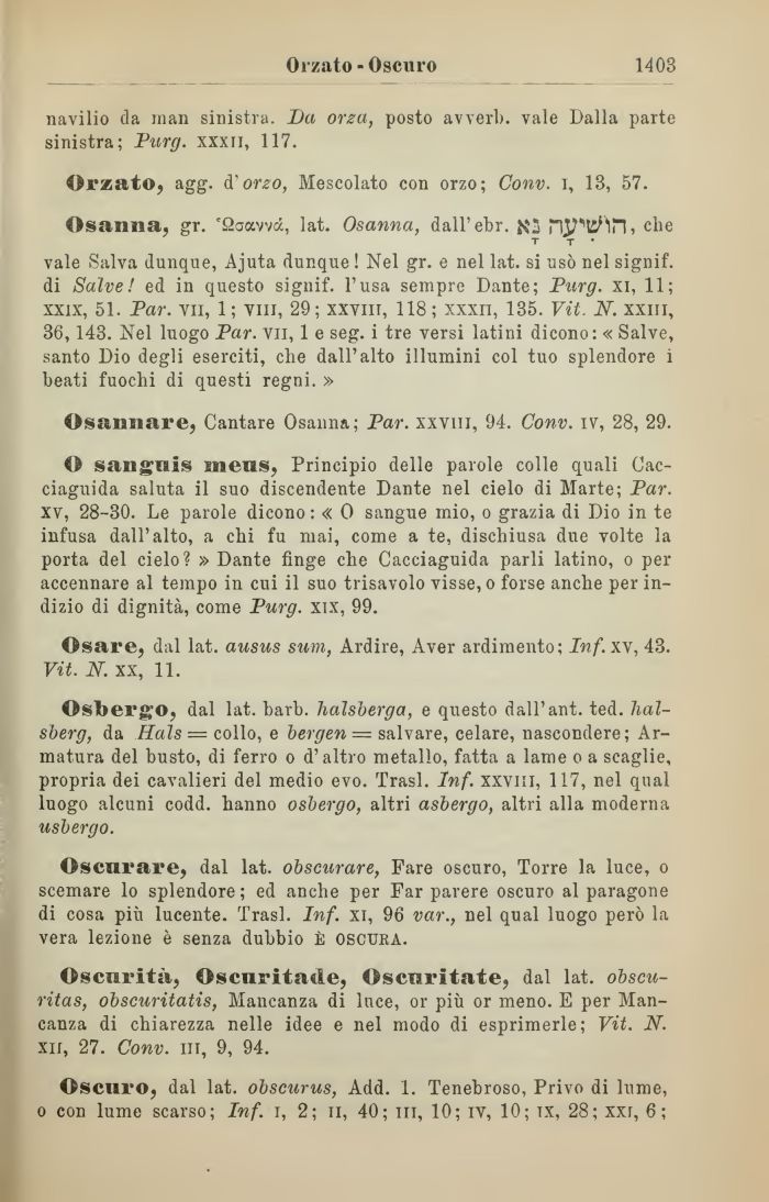 Osannare, Cantare Osanna; Par. xxviii, 94. Conv. ìv, 28, 29.