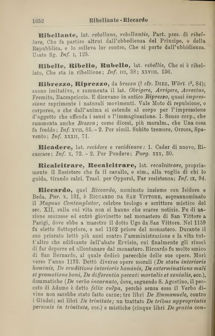 Ribelle, Ribello, Rnbello, lat. rebellis, Che si è ribellato, Che sta in ribellione; Inf. ili, 38; xxviii, 136.