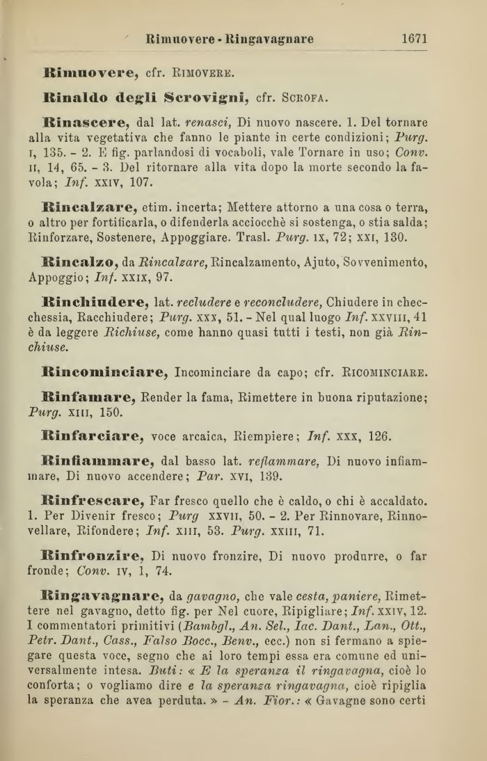 1 commentatori primitivi (Bambgl., An. Sei., Iac. Dant., Lan., Ott., Petr. Dant., Cass., Falso Bocc., Benv., ecc.) non si fermano a spiegare questa voce, segno che ai loro tempi essa era comune ed universalmente intesa. Buti: « FJ la speranza il ringavagna, cioè lo conforta; o vogliamo dire e la speranza ringavagna, cioè ripiglia la speranza che avea perduta. » - An. Fior.: « Gavagne sono certi