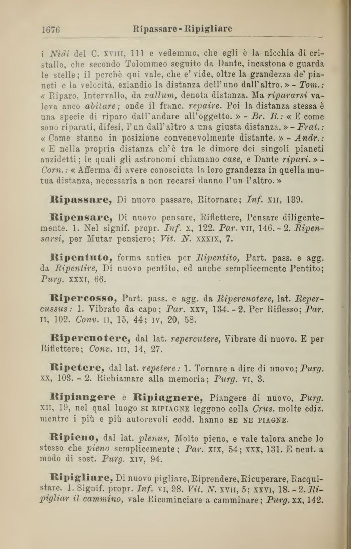 Ripassare, Di nuovo passare, Ritornare; Inf. xn, 139.