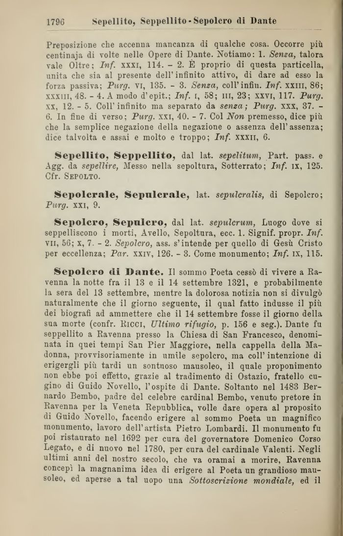 1796 Sepellito, Seppellito Sepolcro (li Dante