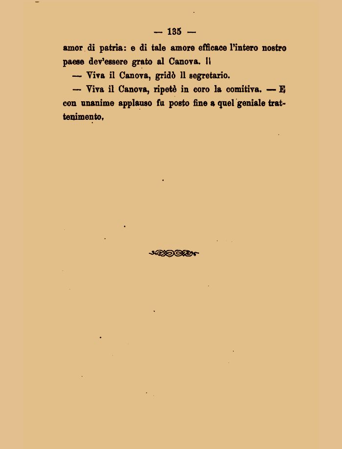 — Viva il Canova, ripetè in coro la comitiva. — D con unanime applauso fu posto fine a quel geniale trattenimento,