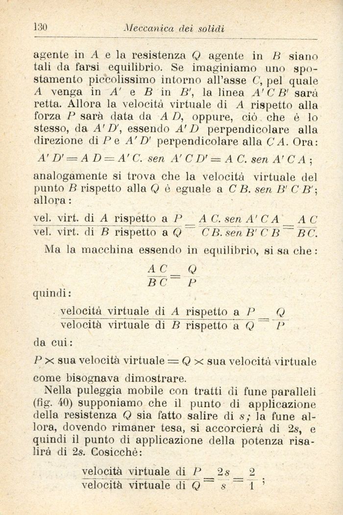analogamente si trova che la velocità virtuale del punto B rispetto alla Q è eguale a C B. sen B' C B'\ allora :