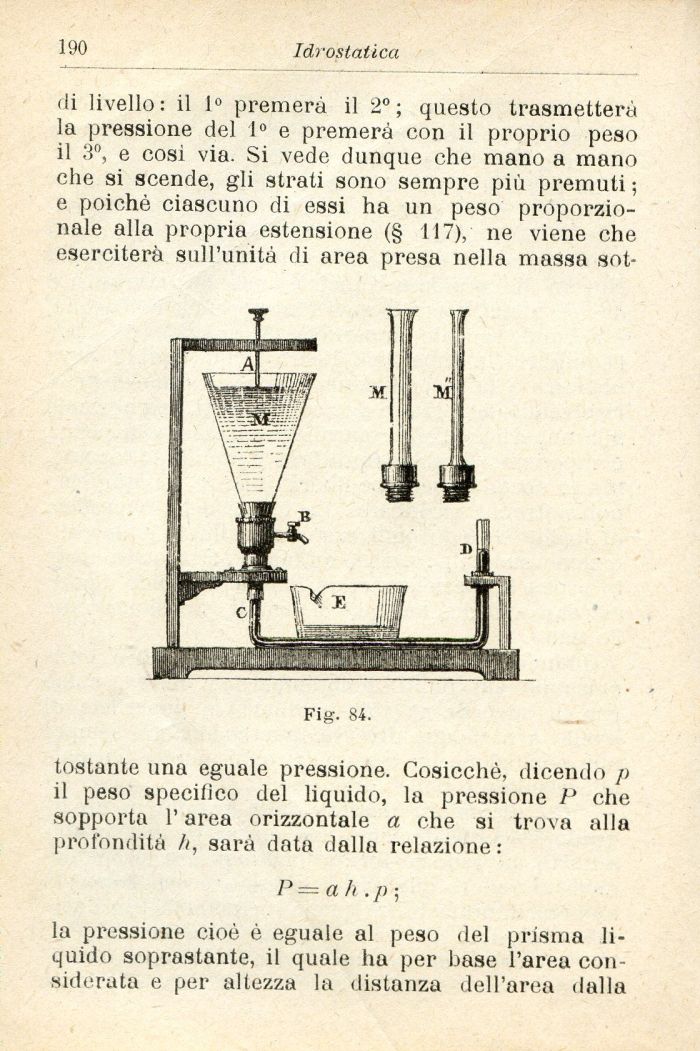 la pressione cioè è eguale al peso del prisma liquido soprastante, il quale ha per base l'area considerata e per altezza la distanza dell'area dalla