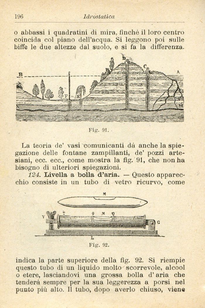 La teoria de' vasi comunicanti dà anche la spiegazione delle fontane zampillanti, de' pozzi artesiani, ecc. ecc., come mostra la fig. 91, che non ha bisogno di ulteriori spiegazioni.