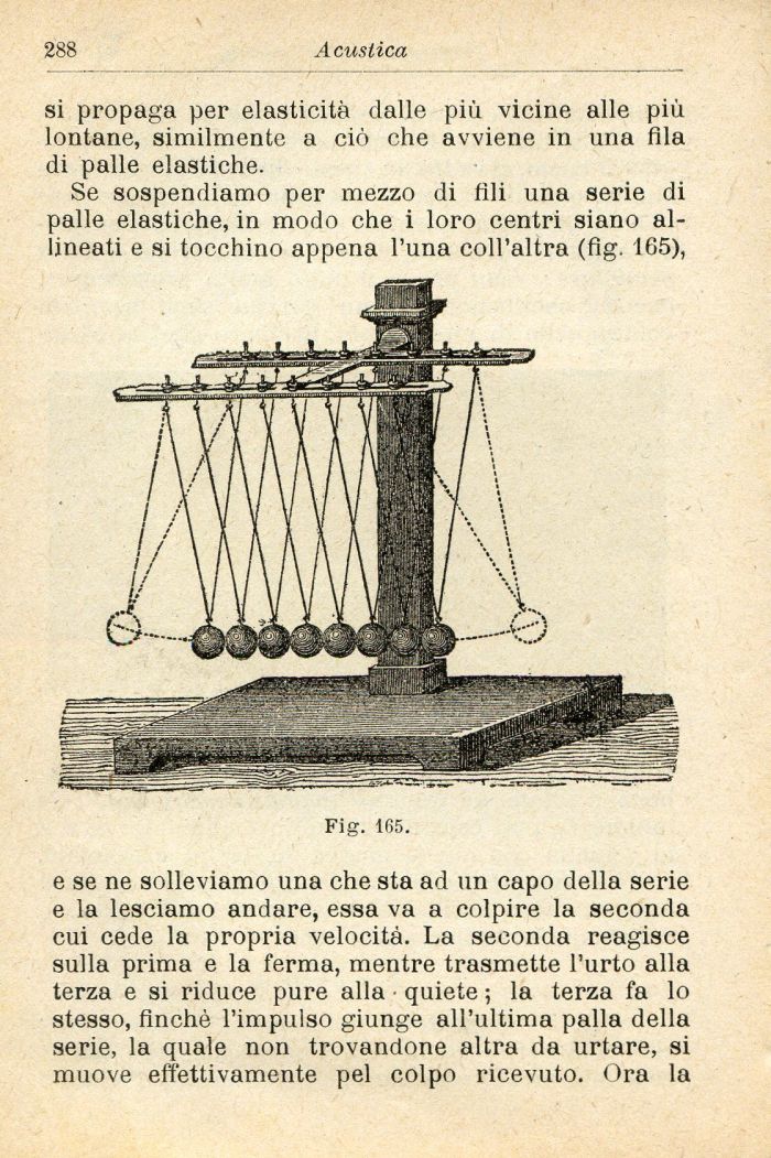Se sospendiamo per mezzo di fili una serie di palle elastiche, in modo che i loro centri siano allineati e si tocchino appena l'ima coll'altra (fig. 165),