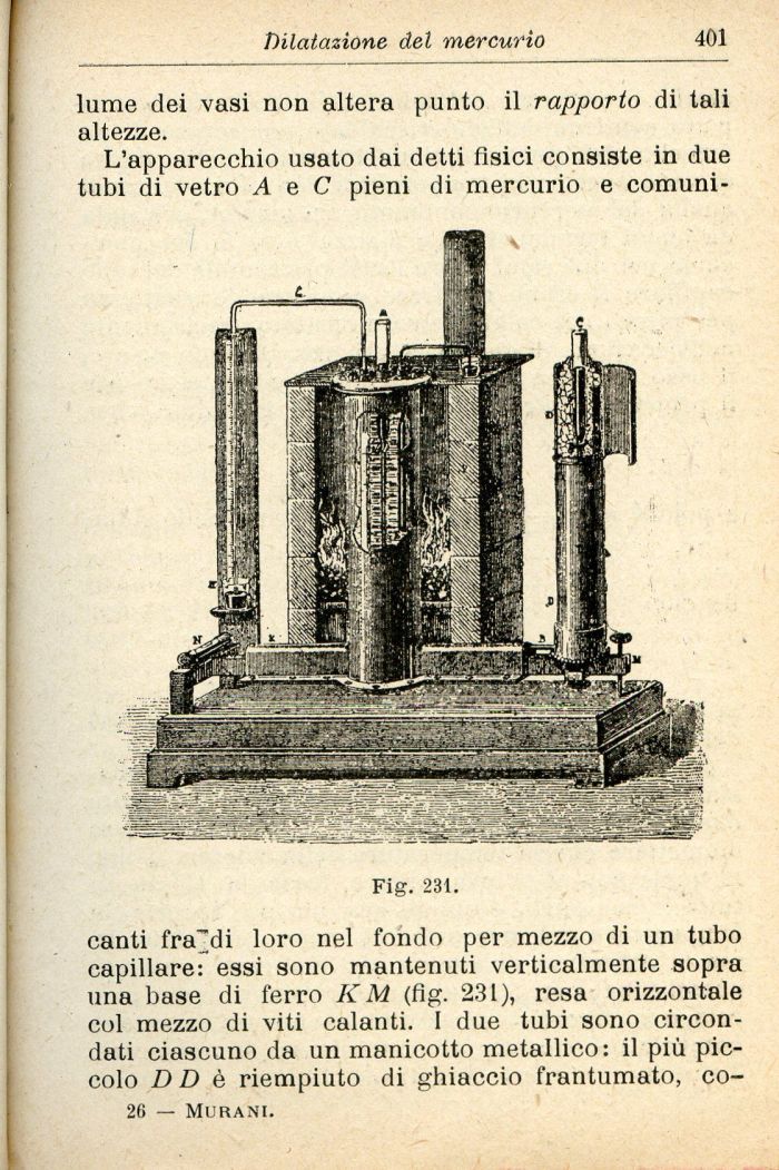canti fraudi loro nel fondo per mezzo di un tubo capillare: essi sono mantenuti verticalmente sopra una base di ferro KM (fig. 231), resa orizzontale col mezzo di viti calanti. I due tubi sono circondati ciascuno da un manicotto metallico: il più piccolo DD è riempiuto di ghiaccio frantumato, co-26 — Murani.