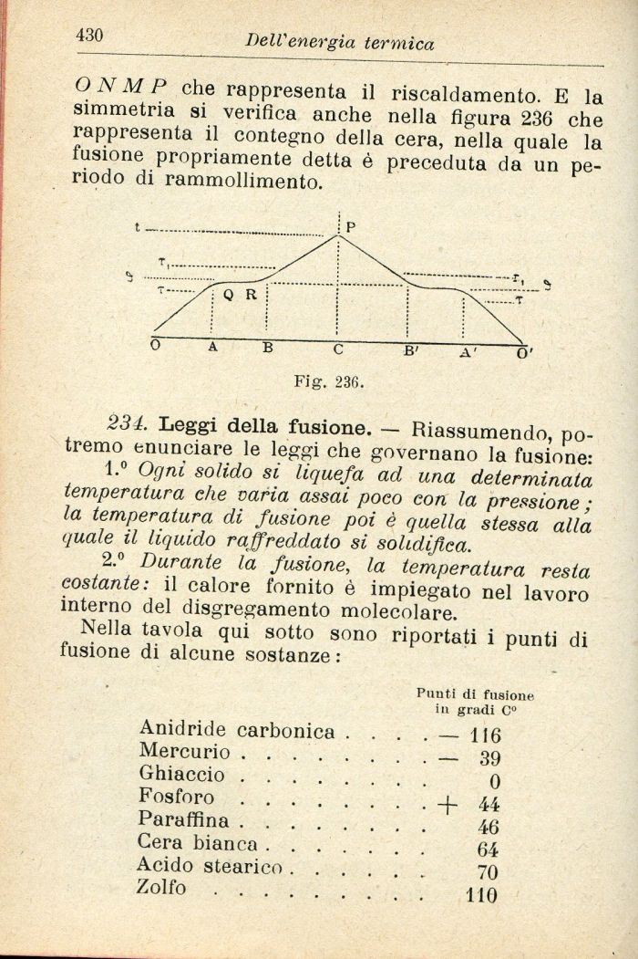 ONMP che rappresenta il riscaldamento. E la simmetria si verifica anche nella figura 236 che rappresenta il contegno della cera, nella quale la fusione propriamente detta è preceduta da un periodo di rammollimento.