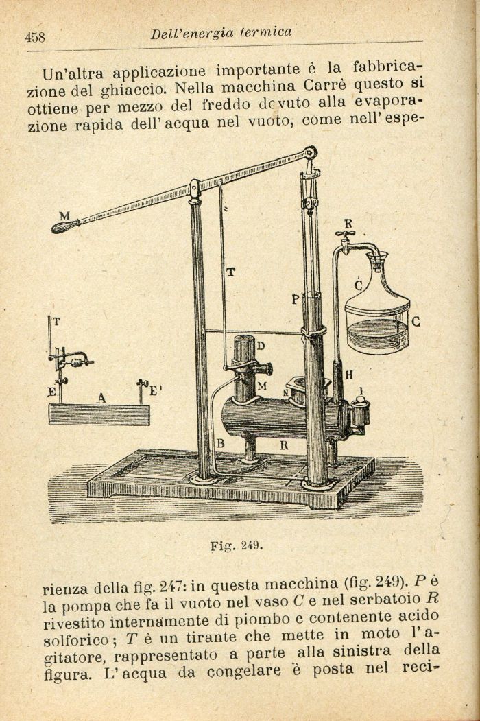 Un'altra applicazione importante è la fabbricazione del ghiaccio. Nella macchina Carré questo si ottiene per mezzo del freddo dovuto alla evaporazione rapida dell'acqua nel vuoto, come nell'espe-