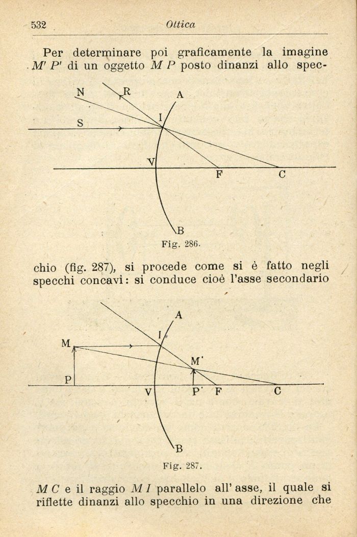 chio (fig. 287), si procede come si è fatto negli specchi concavi: si conduce cioè l'asse secondario