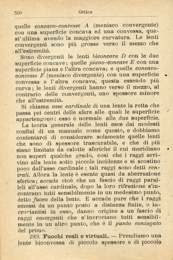 289. Fuochi reali e virtuali. — Prendiamo una lente biconvessa di piccolo spessore e di piccola