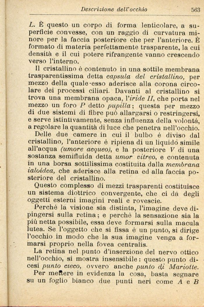 L. È questo un corpo di forma lenticolare, a superficie convesse, con un raggio di curvatura minore per la faccia posteriore che per l'anteriore. È formato di materia perfettamente trasparente, la cui densità e il cui potere rifrangente vanno crescendo verso l'interno.